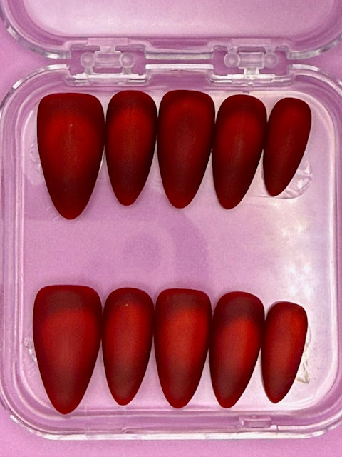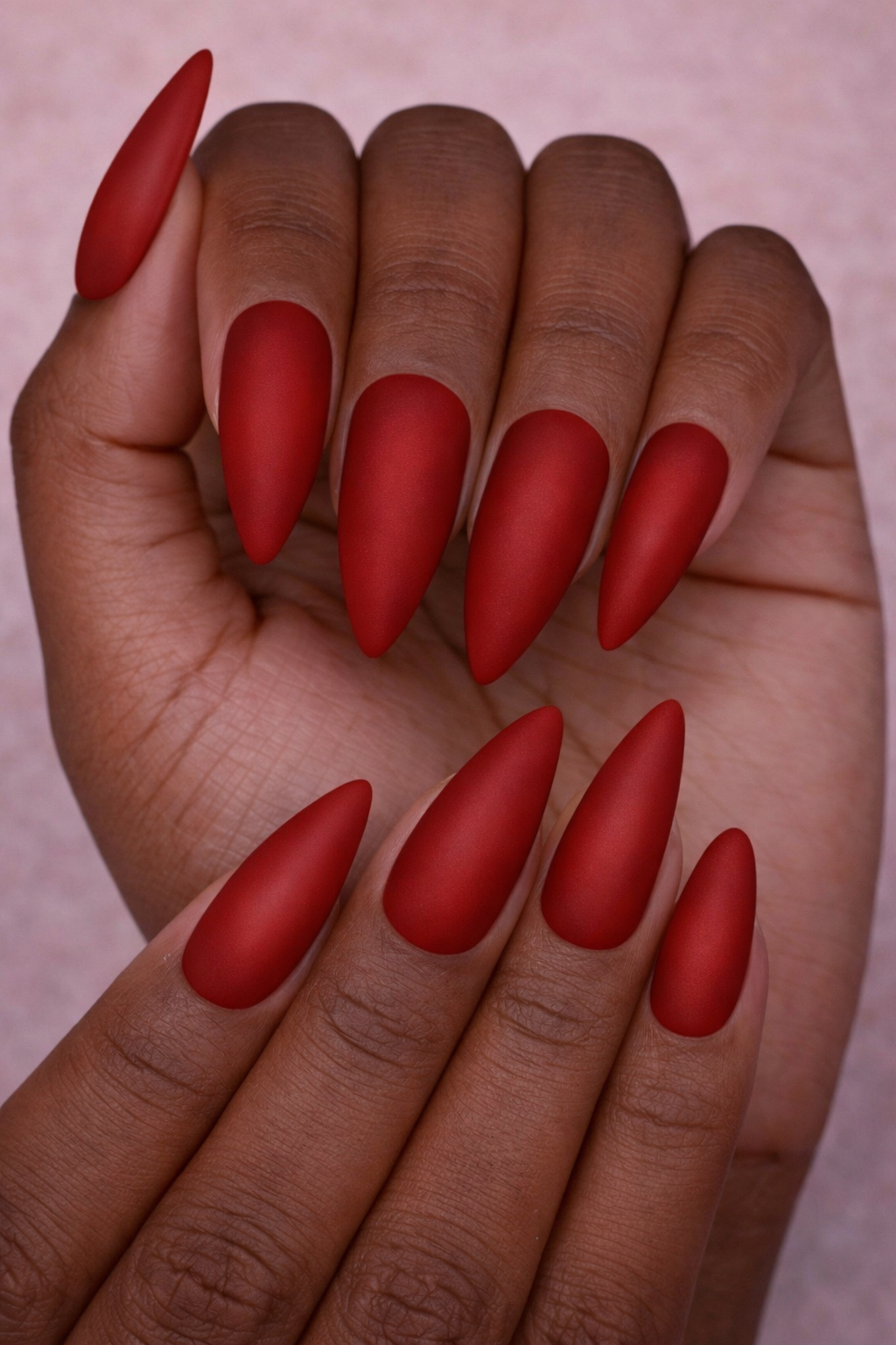A smooth matte red stiletto set that radiates confidence, passion, and undeniable allure. Classic, bold, and dangerously beautiful.