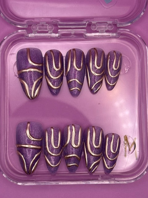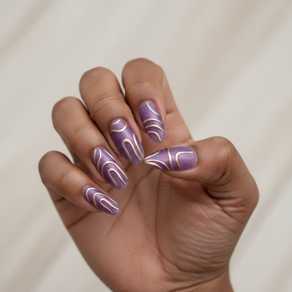 Metallic purple meets molten gold in this electrifying stiletto design made for fearless fashion moments.