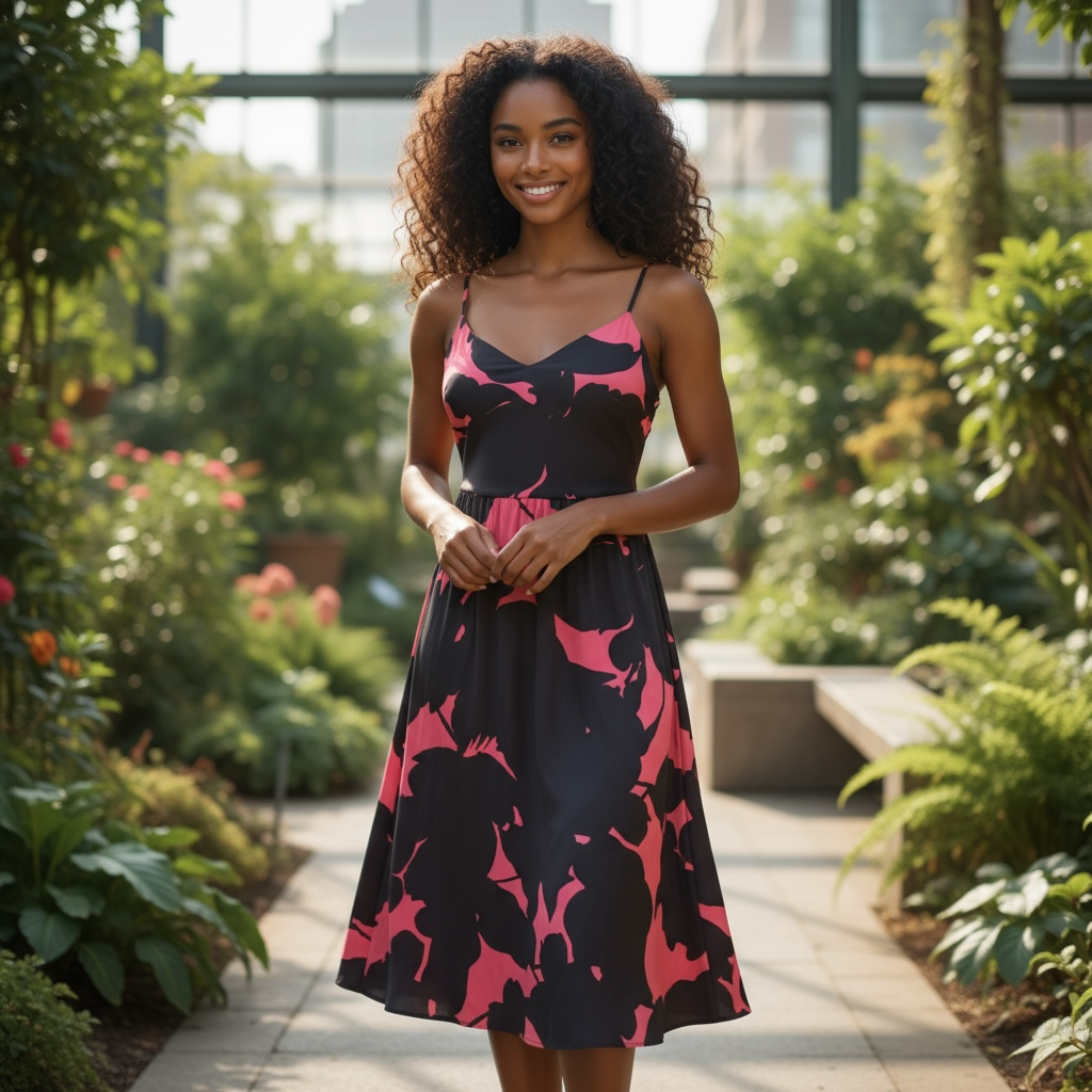 Bring a touch of elegance and ease to your wardrobe with this beautiful floral midi dress by The Loft. Featuring a flattering silhouette and eye-catching black and pink print, this dress is perfect for brunches, weddings, or summer soirées.